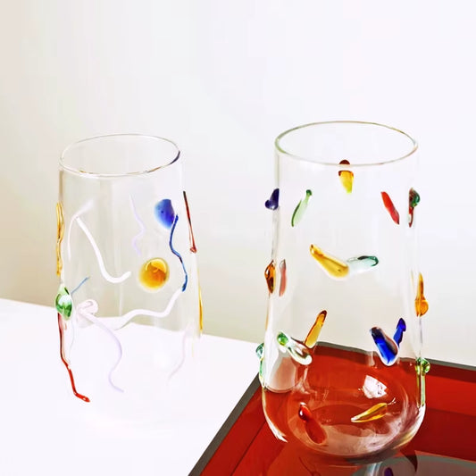 Hand Made Glass Lovely Color Water Cup Gift Candy Color Dots Cup Drinking Utensils Decor Glass Cup Coffee Mug Cute Tumbler